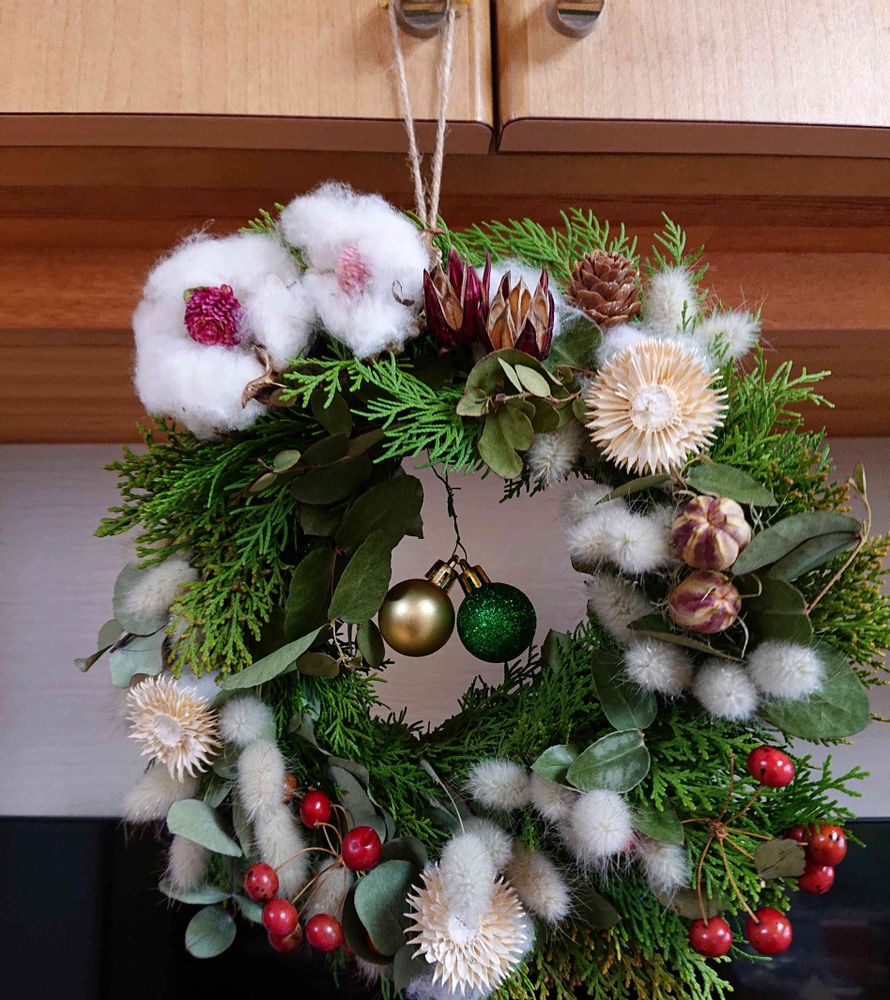 10日ほど前に同級生の花友さんと一緒にリース作りをしました😊✨😊 ✨