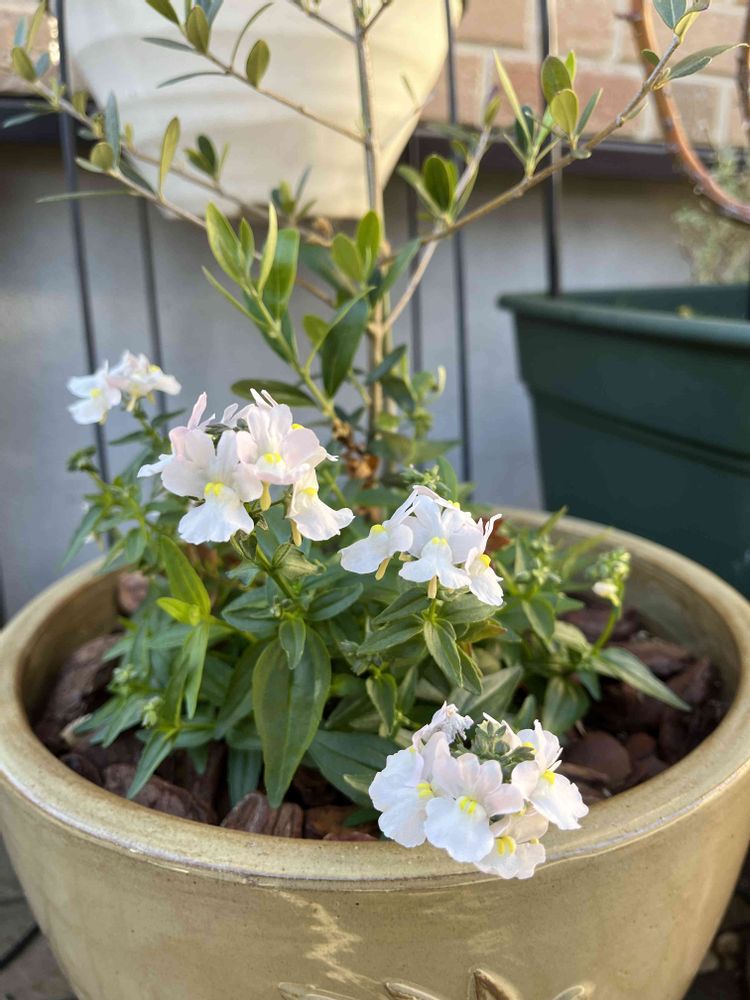 うす紫色のネメシアさんだけど、白く咲きました🤗