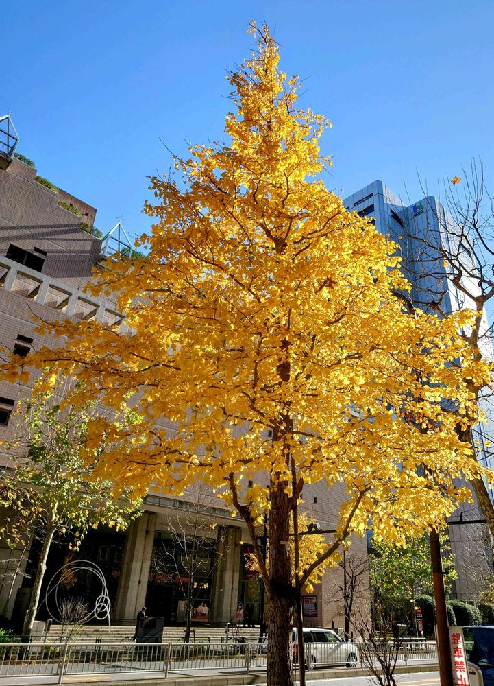 昼休み、散歩途中に見かけたイチョウ。青空を背景に黄色が綺麗でした。