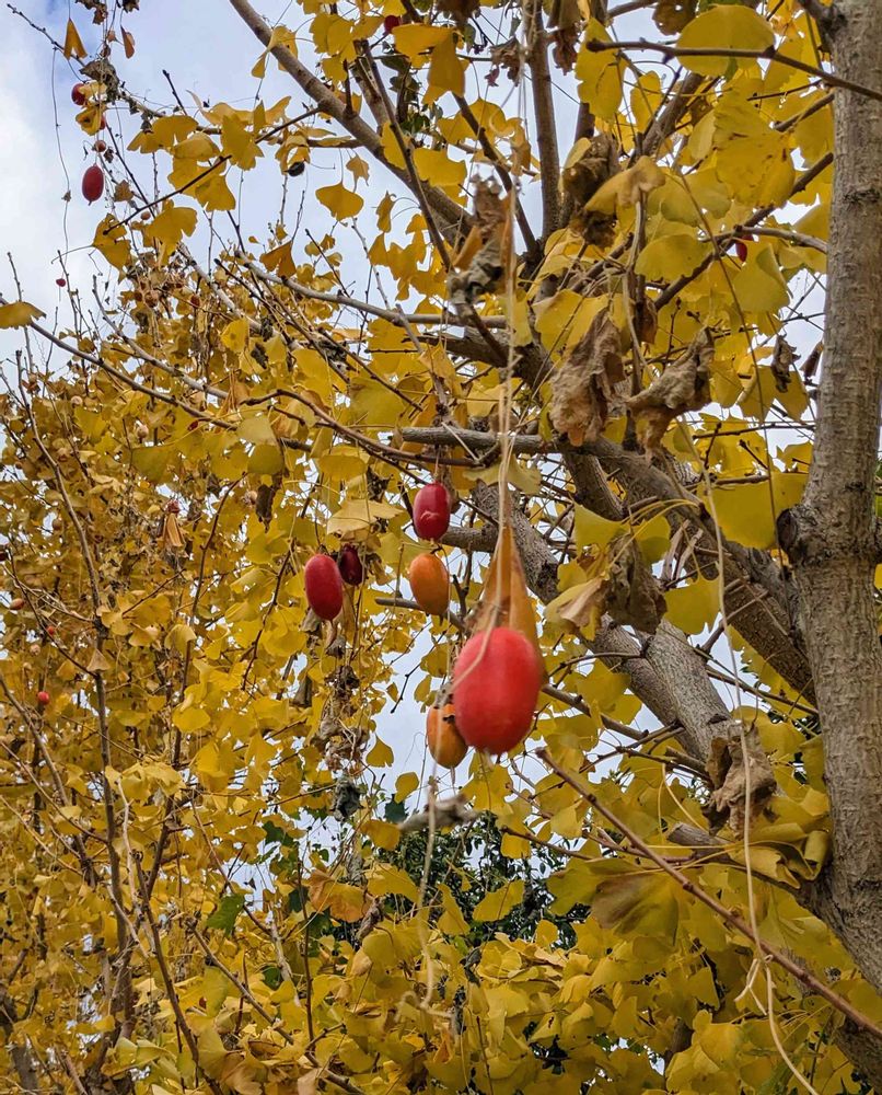 散歩道にて、イチヨウの、木に、カラスウリの、実が、❤️❤️❤️❤️💐❤️❤️❤️🙋