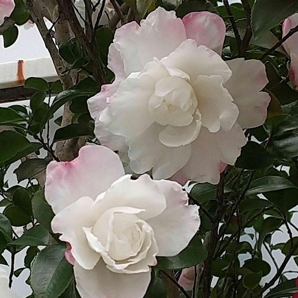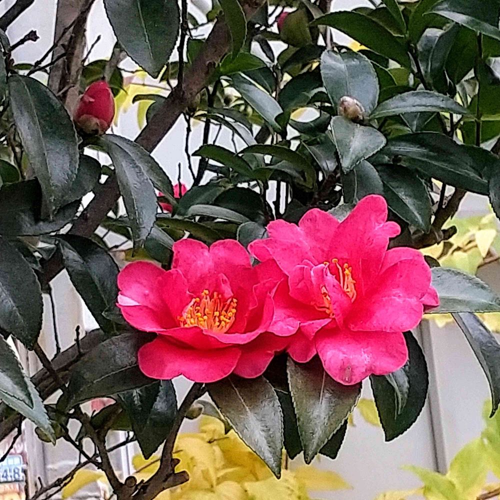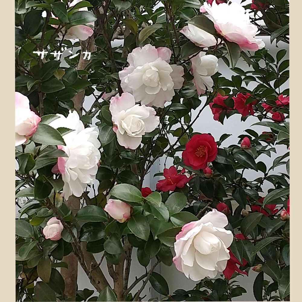 電停横の花壇に、今年も紅白のサザンカが仲良く咲いています❣️🤍