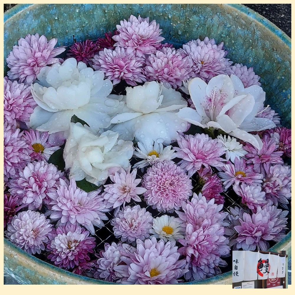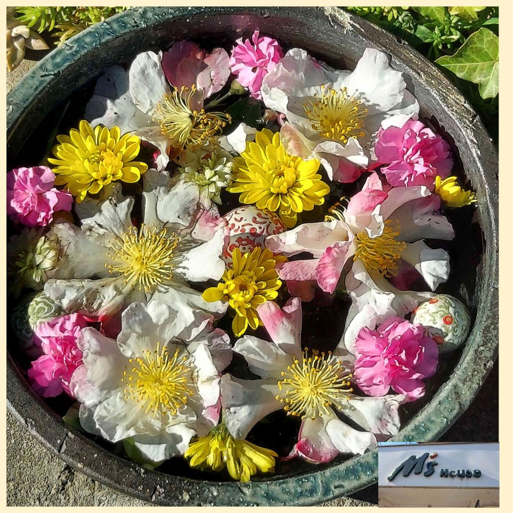 今日も優しい花手水ありがとうございます(❁ᴗ͈ˬᴗ͈)ペコリ♡...*゜