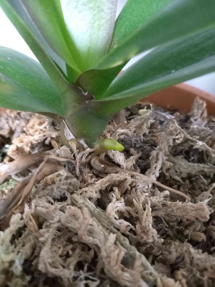 花が終わって植え替えて今花芽じゃ無いよ新しい葉っぱが出て来てる。