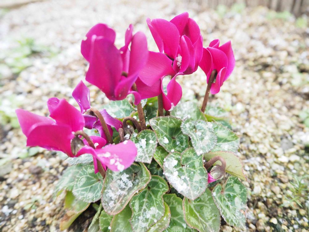シクラメンもビオラさんも、白い粉雪を被ってるんですね😅🤍🎶