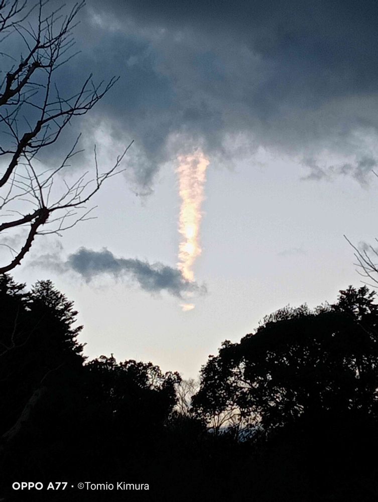 一昨日、京都丹波亀岡の上空に、不思議な夕日に輝く雲が出現しました。