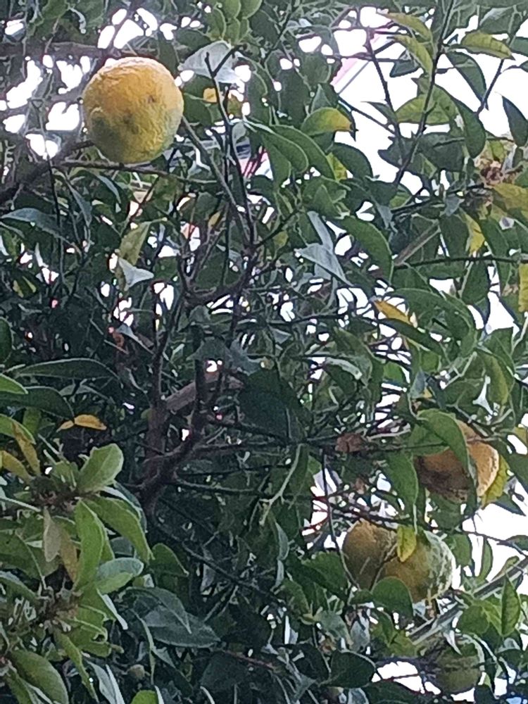 お部屋から、まだ収穫していない柚子と、雪を📷