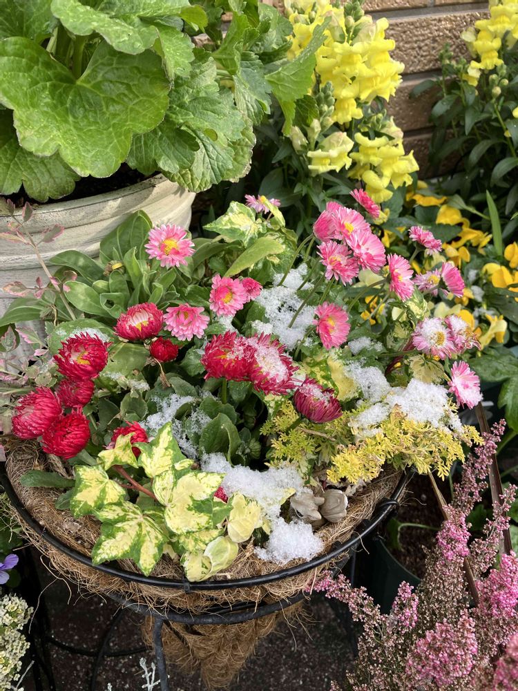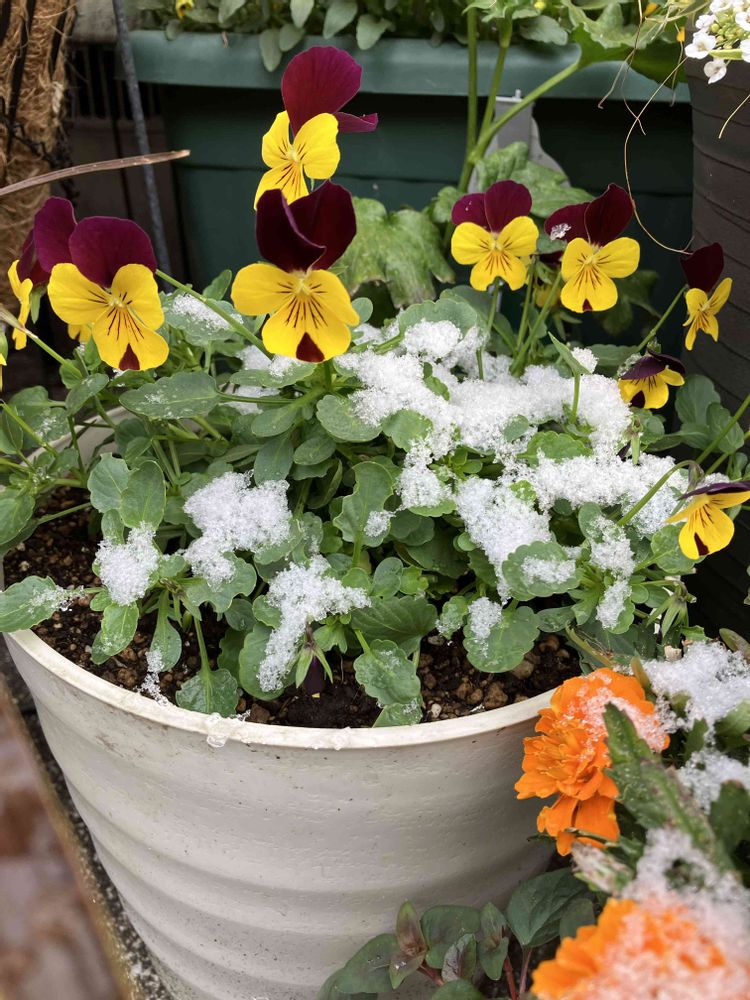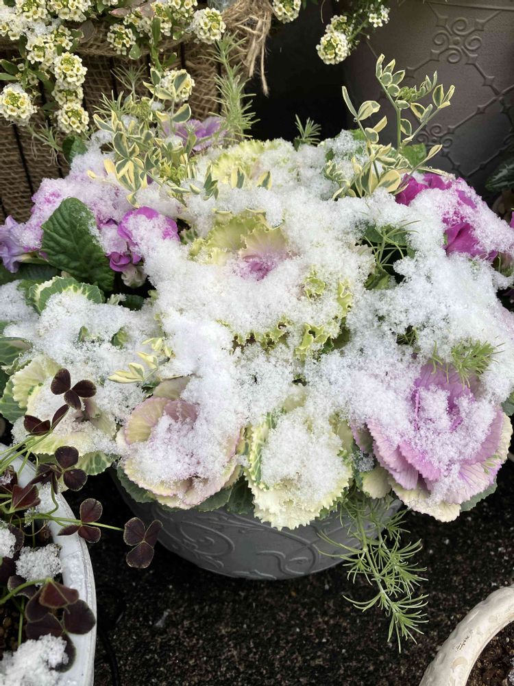 寒さ対策でダイソーの不織布掛けてたけど、貫通して雪被ってた!笑