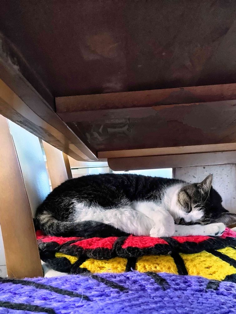 チビくんが寝てる場所、母がご飯食べる席よ(≧ω≦)🪑