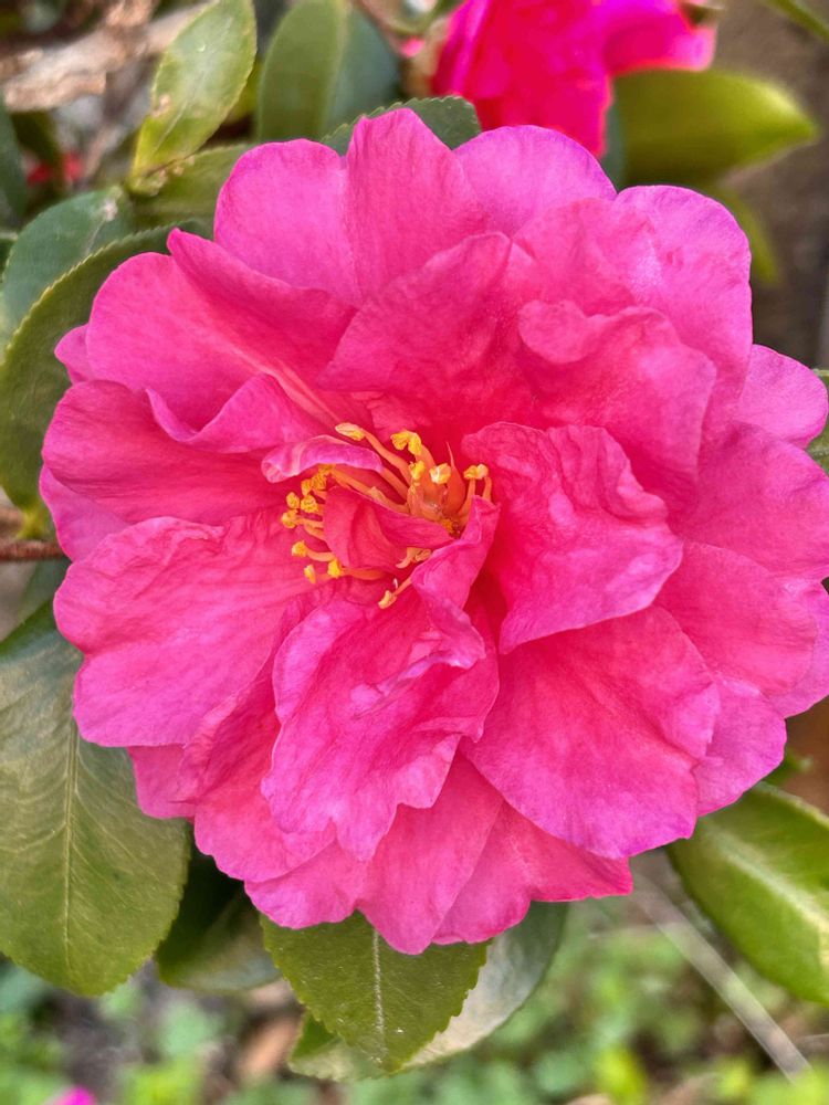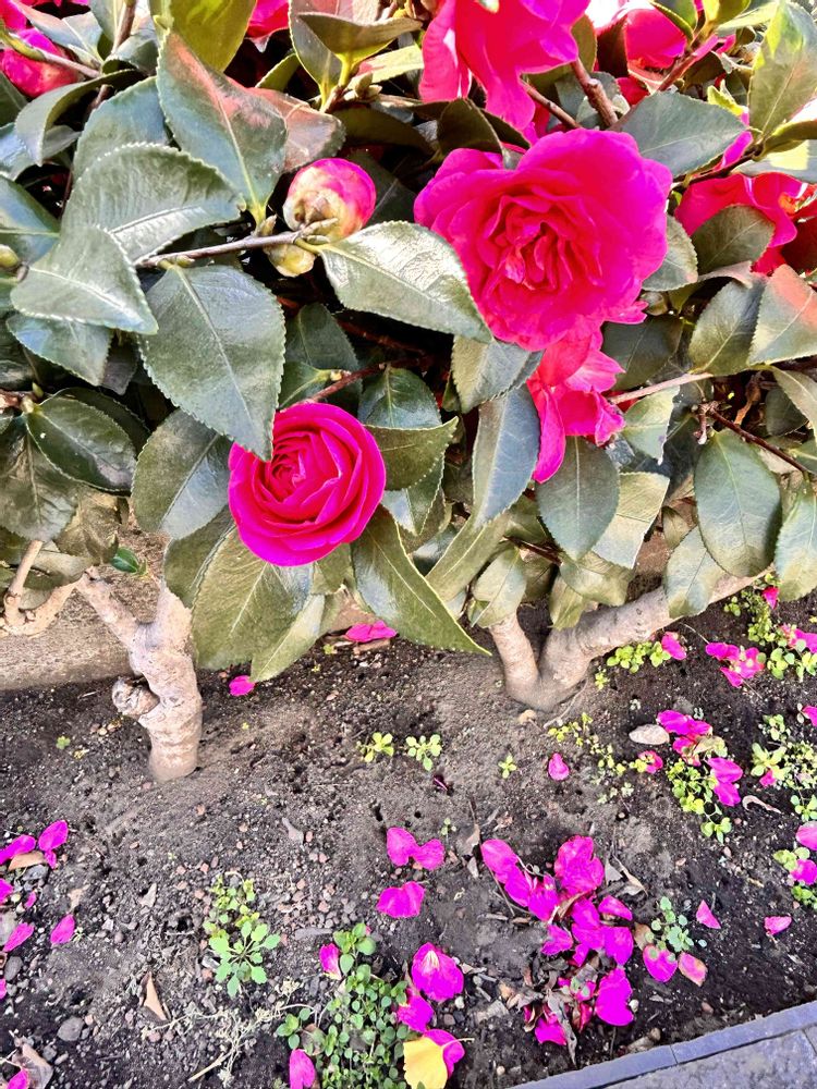 花びらが多くてきれいなサザンカですね。我が家のサザンカよりもとても豪華な感じです。先に咲いたのがたくさん散って、はっきりサザンカと分かります😃