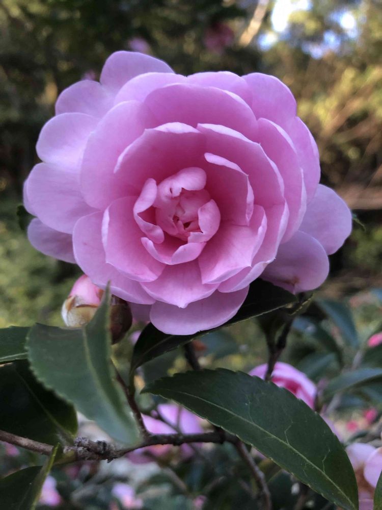 夕日に輝くサザンカ「花富貴」をパチリ!📸🌸🌿😊😄🌇✌️