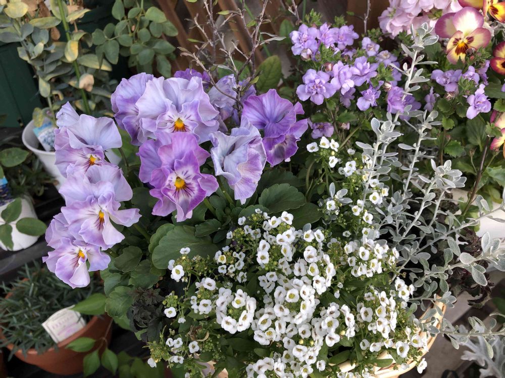 11月の終わりに投稿したシエルブリエの寄せ植えですが、寒くなって最初より花色が濃くなって好きな色合いに変化して来ました😊 バコパも沢山咲いてきましたよ!八重咲きのバコパがめっちゃ可愛いです😍 バコパは苦手でいつも枯らしてしまうので大切に育てたいです。