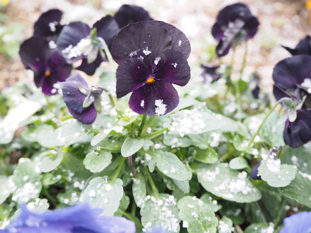 白い雪に黒いビオラが映えてます🤍🖤🤍🖤