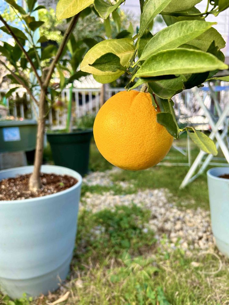 ネーブルオレンジは鉢植えの5年生。みかんは庭を引き継いだ時からあるので何年生か不明ですが、今年は頑張ってくれました♪