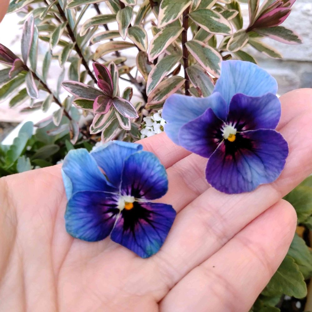 ちょっとピントが合っていませんが、濃い青がかわいいタネまきビオラちゃん💙