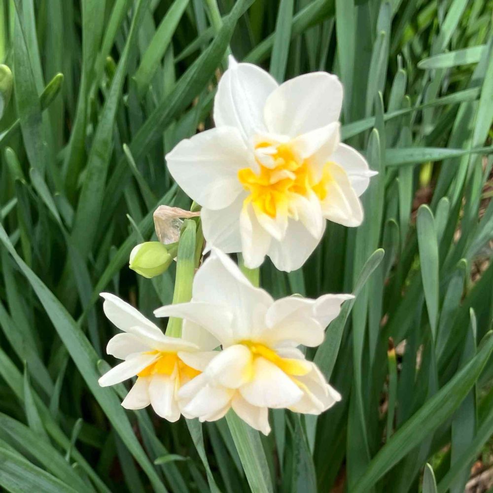 Googleで調べたらフサザキスイセンと出たのですが八重もある見たいなのでそうなのでは無いかと思います😁