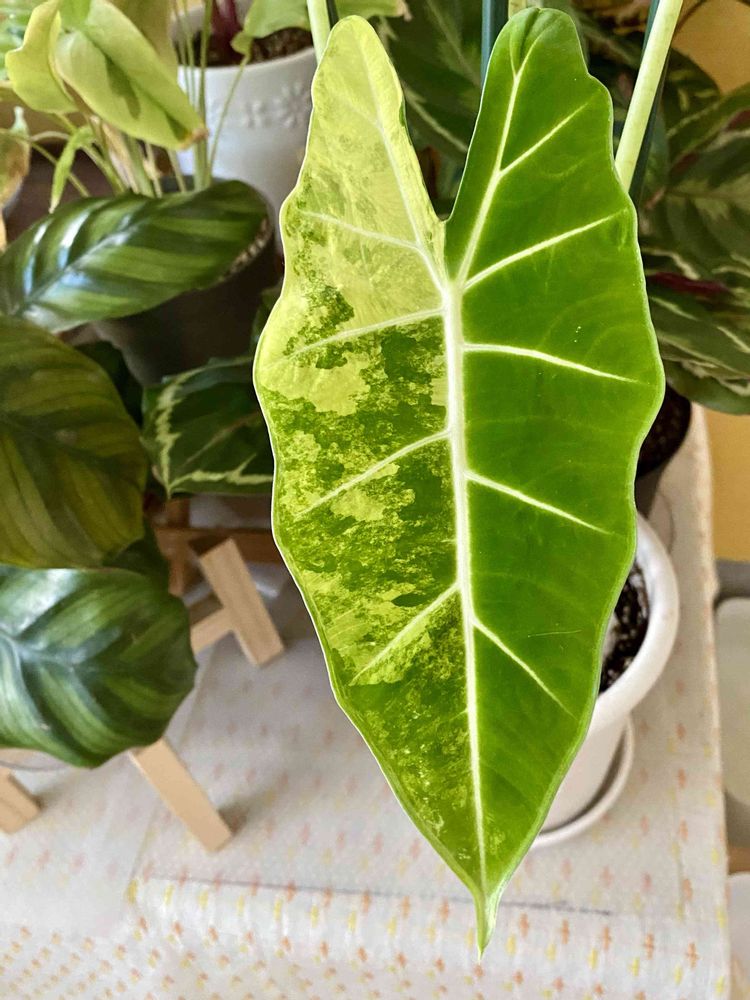 アロカシア・グリーンベルベット斑入り,観葉植物,植物のある暮らしの投稿画像