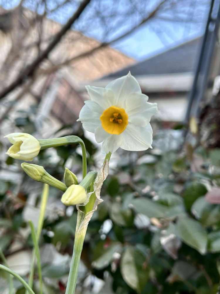 阪急電車西向日駅あたりでもようやくニホンスイセンが咲き始めました😊