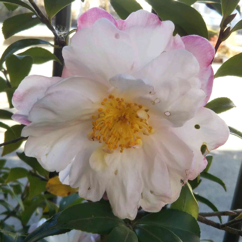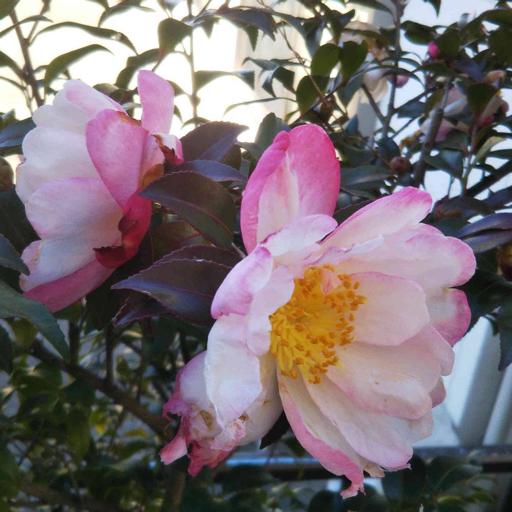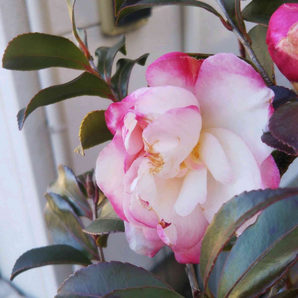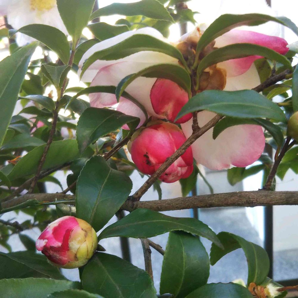 冷たい風が吹く中、庭の山茶花がきれいです。