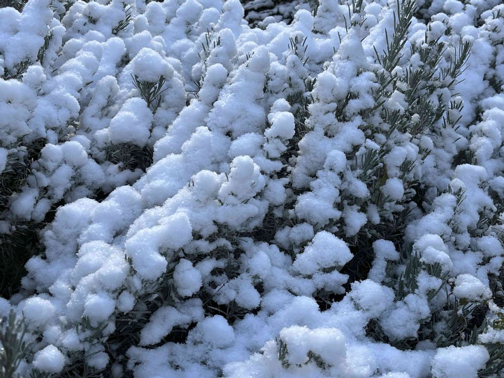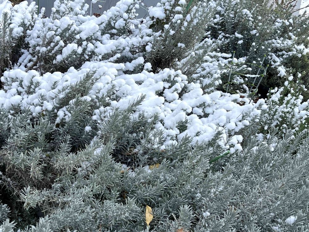 ③ 全体。手前だけホウキで🧹ザッと払いました。ラベンダーがワッサワサのモッサモサ。剪定していません😅