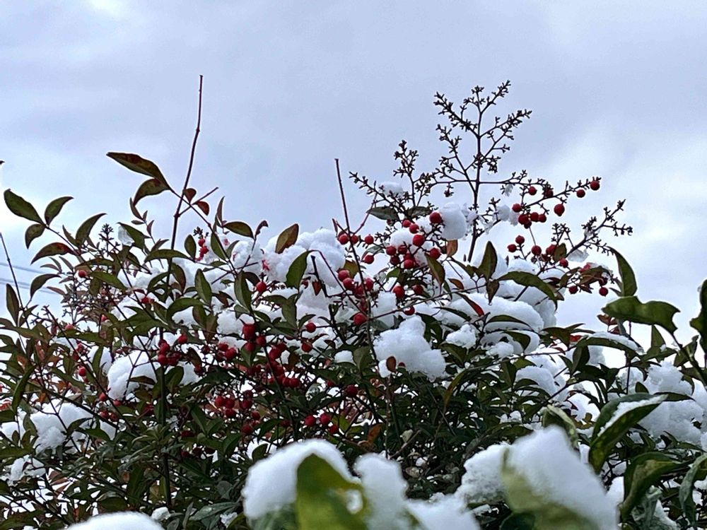 ④ 南天。ここ庭の端の南天の実はまだ残っていますが、ウッドデッキ横は丸ハゲ。