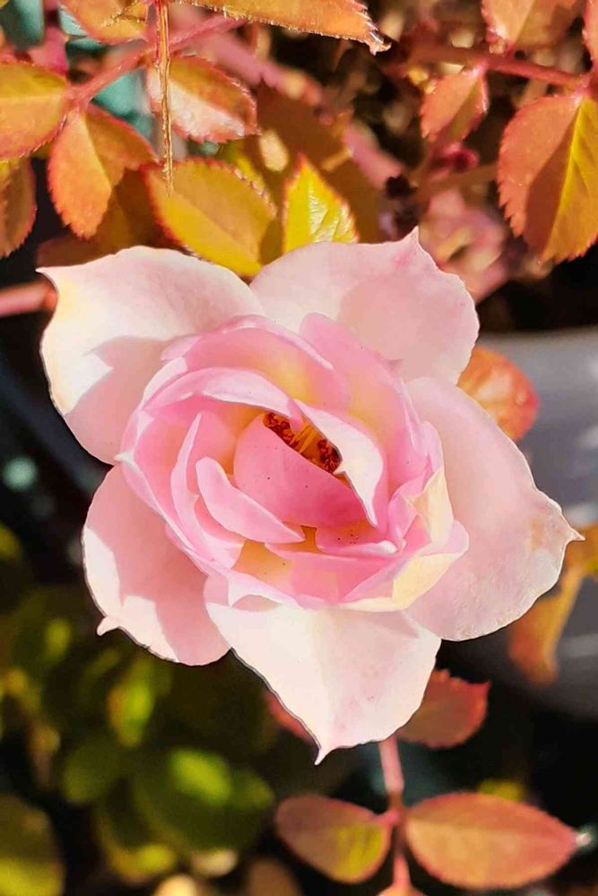 冬のミニ薔薇さんの葉っぱ🌿、黄色っぽく良い感じですね。