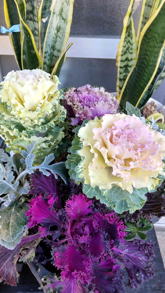 植えたて~💜💚ハボタン、イロイロ💜🤍