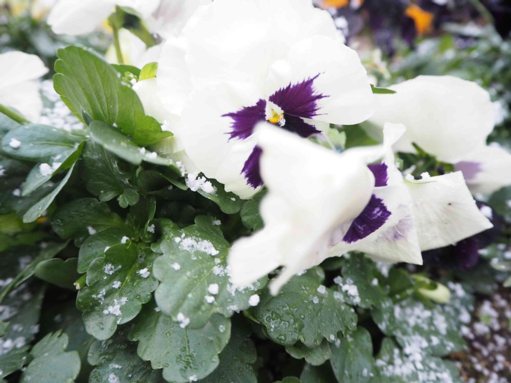 こんばんは🌙😃❗雪降ったんですね✨お花が寒そうですね✨パンジービオラは強いから大丈夫ですよ✨