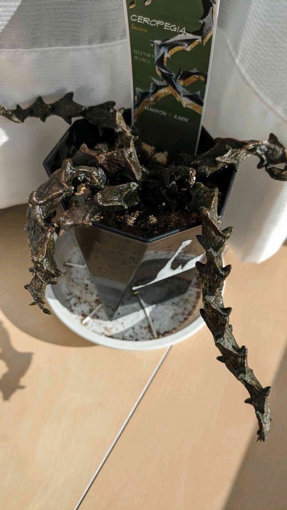 この質感と色合い、ガガイモ科は楽しい品種が多いですよね。寒さには弱いので窓辺で日光浴です!