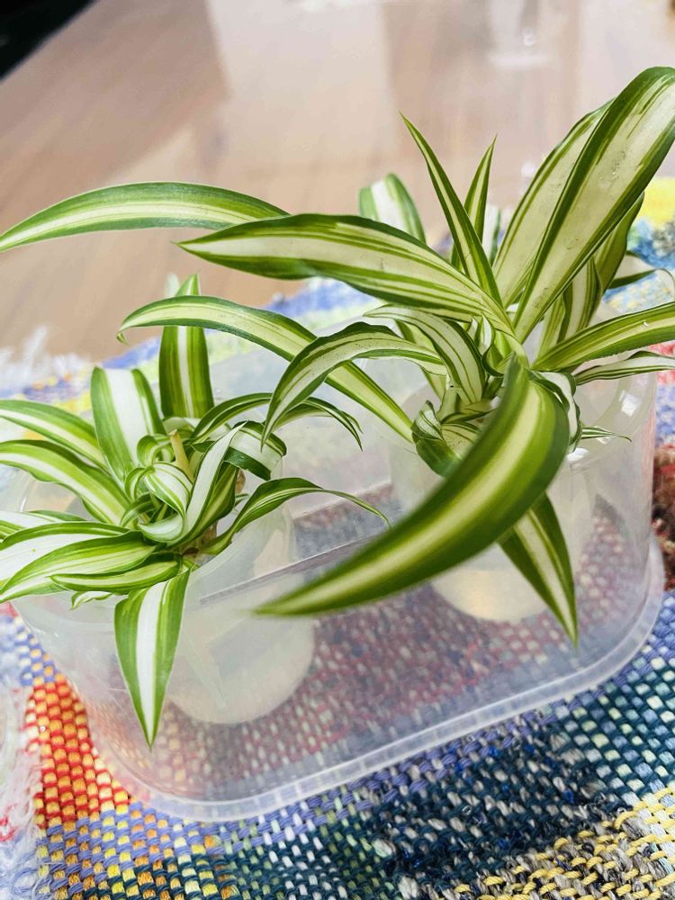 そちらでガーデニングやお花の話をしたら、お店の外で植木鉢で育ててる「オリヅルラン」を「切って分けてあげるよ〜!」と!!