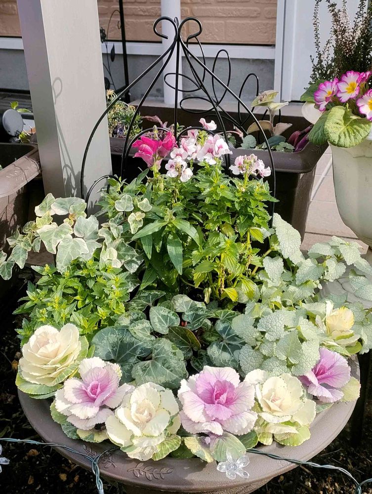 この寄せ植えのメインのお花にしたかったのは 3年目をむかえる 真ん中のシクラメンなんですが、蕾は ついているものの なかなか咲いてくれません