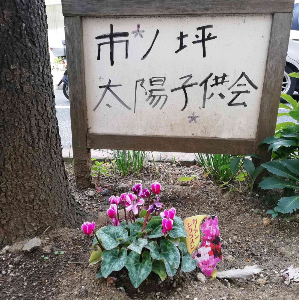 ので、市ノ坪太陽子供会のみなさんの育てたガーデンシクラメンをどうぞ、、、