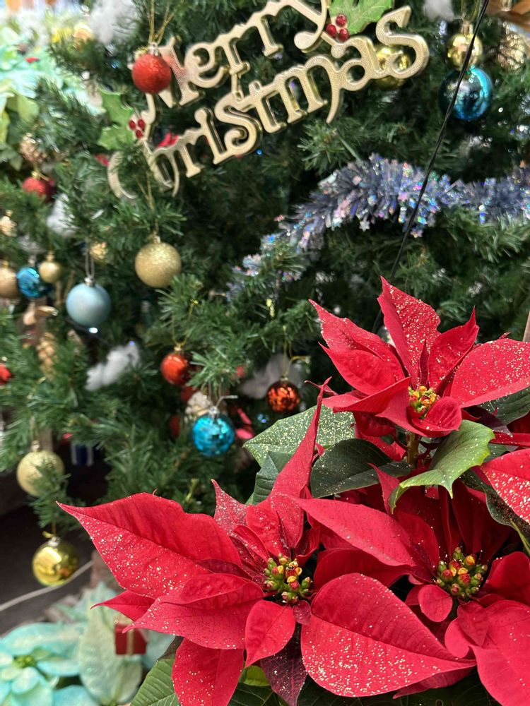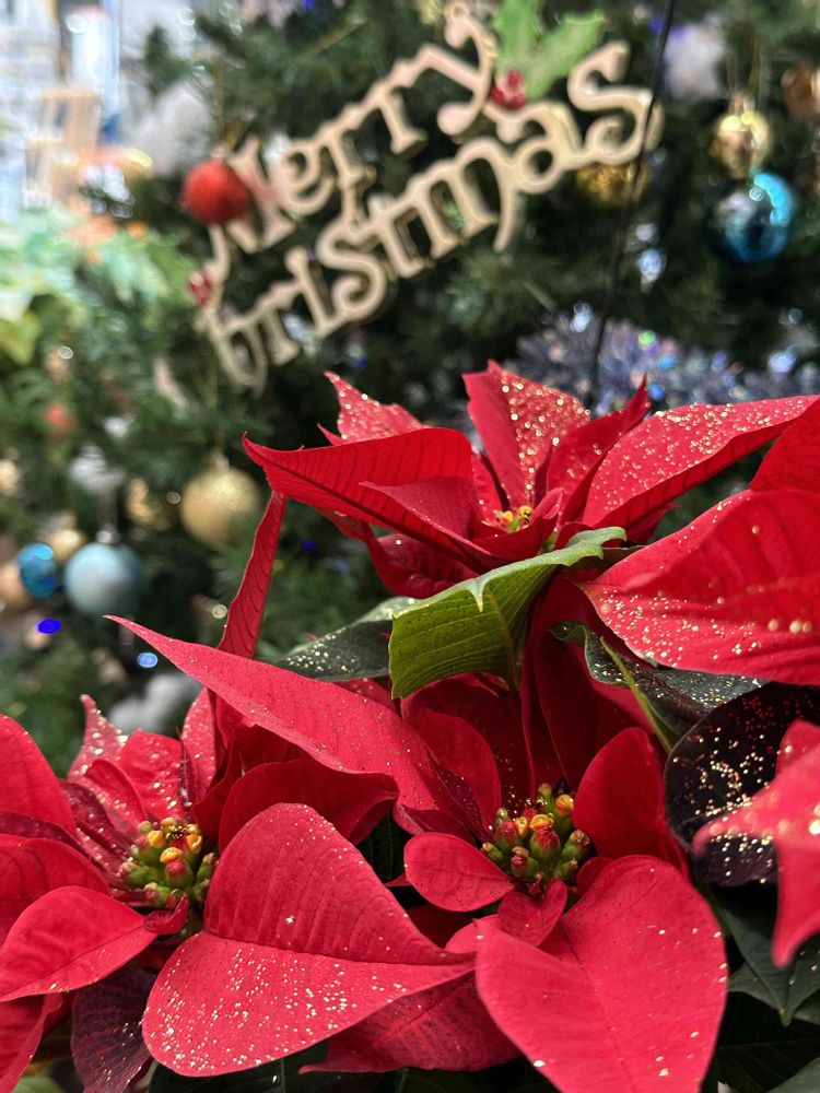 先月ホームセンターで見かけたポインセチアにラメがキラキラ✨して綺麗でした。