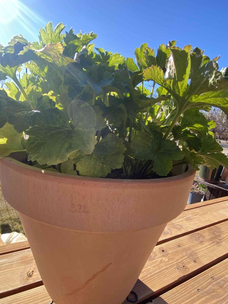 春にヒョロヒョロした開花株で迎え、大鉢に植えています。