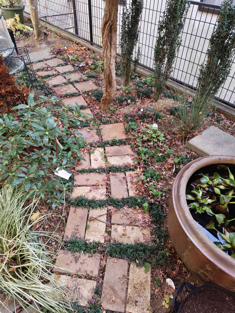 冬場の彩りを増やしたくてヒューケラを小径の脇に植えましたが、猛暑後の秋に半数くらいが枯れてしまいました。生き残ったヒューケラ達も冬場は縮こまっていて彩りの足しにはならず。この冬はこのエリアでクリスマスローズの地植えに挑戦予定!