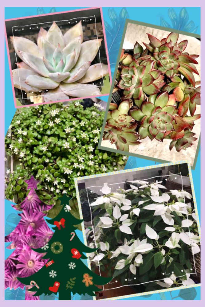 季節の衣に着替えて、彩りを変化させる多肉植物と、白い装いでクリスマス気分を盛り上げ⤴️⤴️てくれるプリンセチア、そして季節を彩り、楽しい歌声を聴かせてくれる花*花
