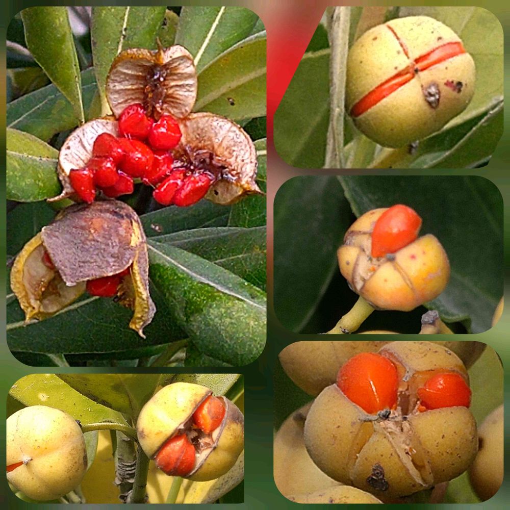 最初に見つけた左上の実は、マサキではなく、トベラの実のようです。