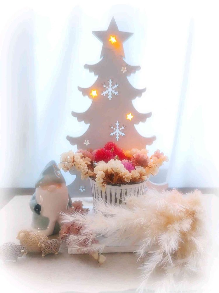 そう、あのツリーです。コンパクトでお花も飾れるので重宝してます。😉