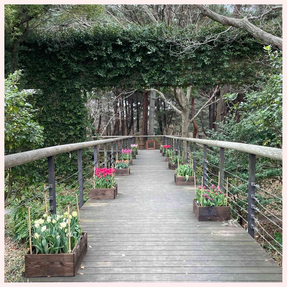 ひたち海浜公園の海側はテラスがあって前の池の🌷がとってもステキでした💓