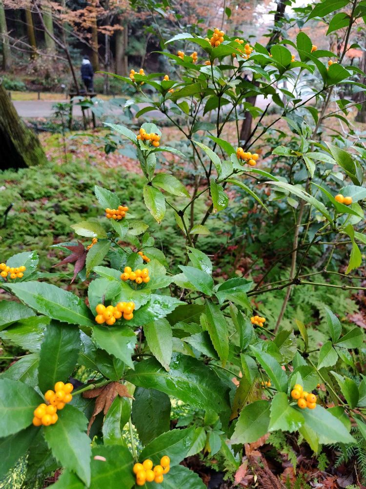 黄色のセンリョウ🧡とフユノハワラビ🌿がキレイでした💚🧡🌿🌕