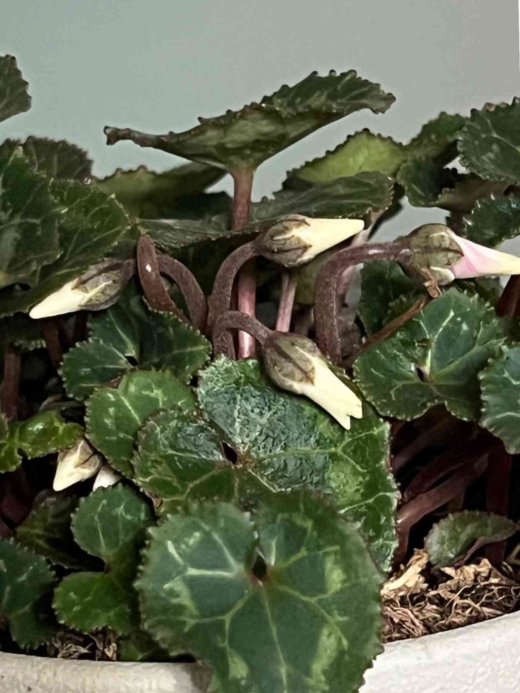 夏越しに成功したシクラメンの蕾が膨らみ