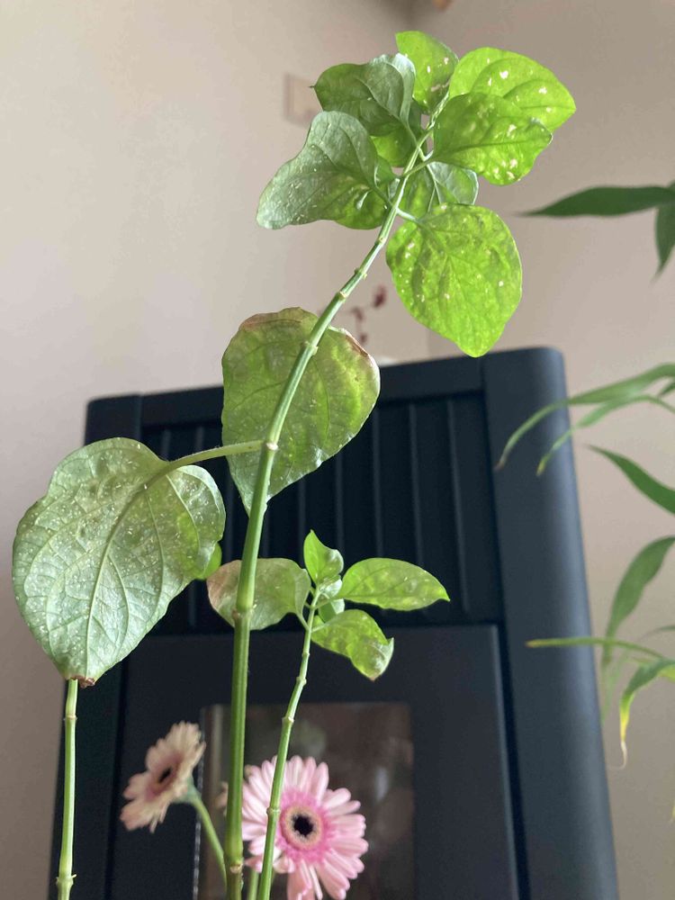 とりあえず、ベニカスプレーかけて、黒綿棒でこそぎ取ってみたり、悪い葉っぱを✂︎しました。