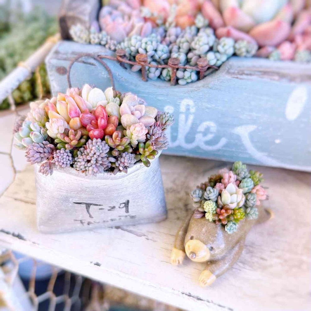 多肉の寄せ植えはまだ、単品で育てるだけですが、お花が咲きそうで楽しくなってきました😉💕🎶