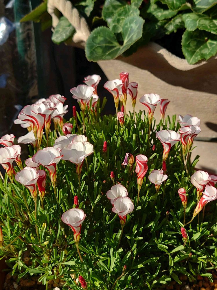 元々オキザリス大好きで白とピンクは沢山地植えしてたけれど、最近友達が可愛いツイストキャンディの鉢をプレゼントしてくれました😍