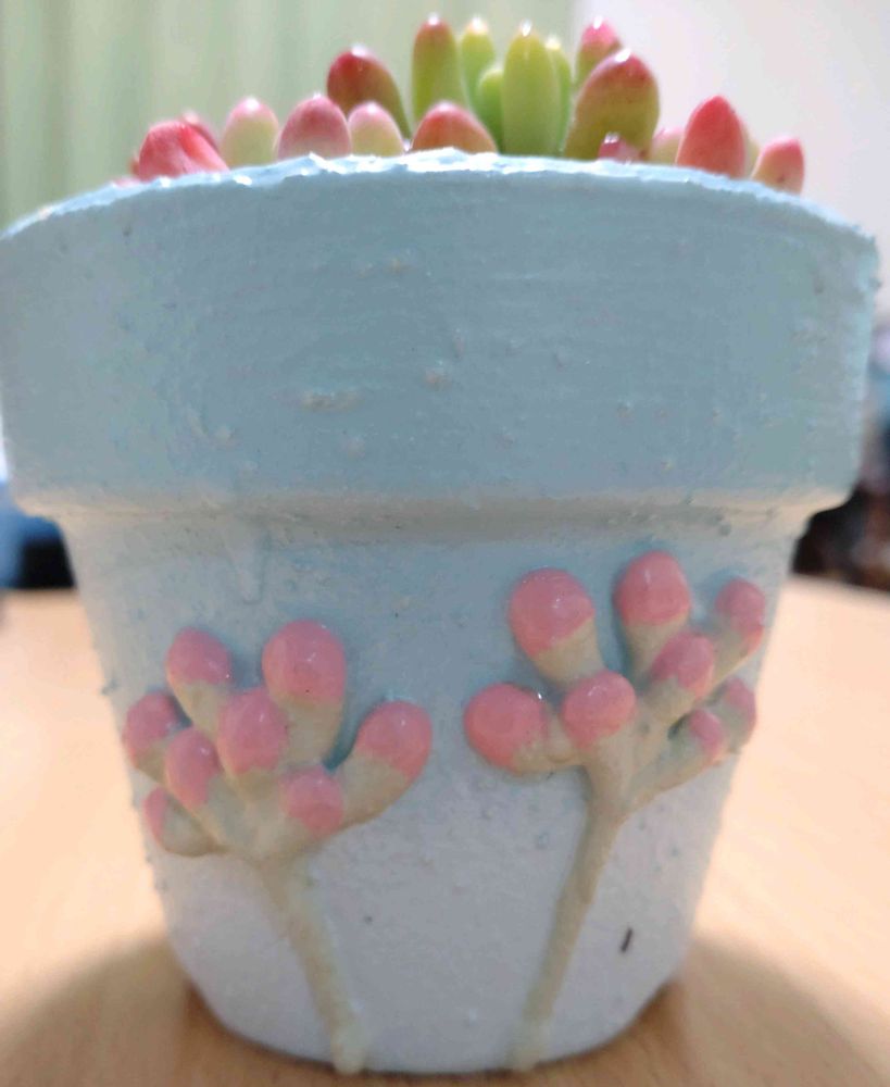 こんにちは😊とっても可愛いリメ鉢ですね😍💕乙女心も丁度色付いて可愛い❤キュンキュンしちゃいますね🍓
