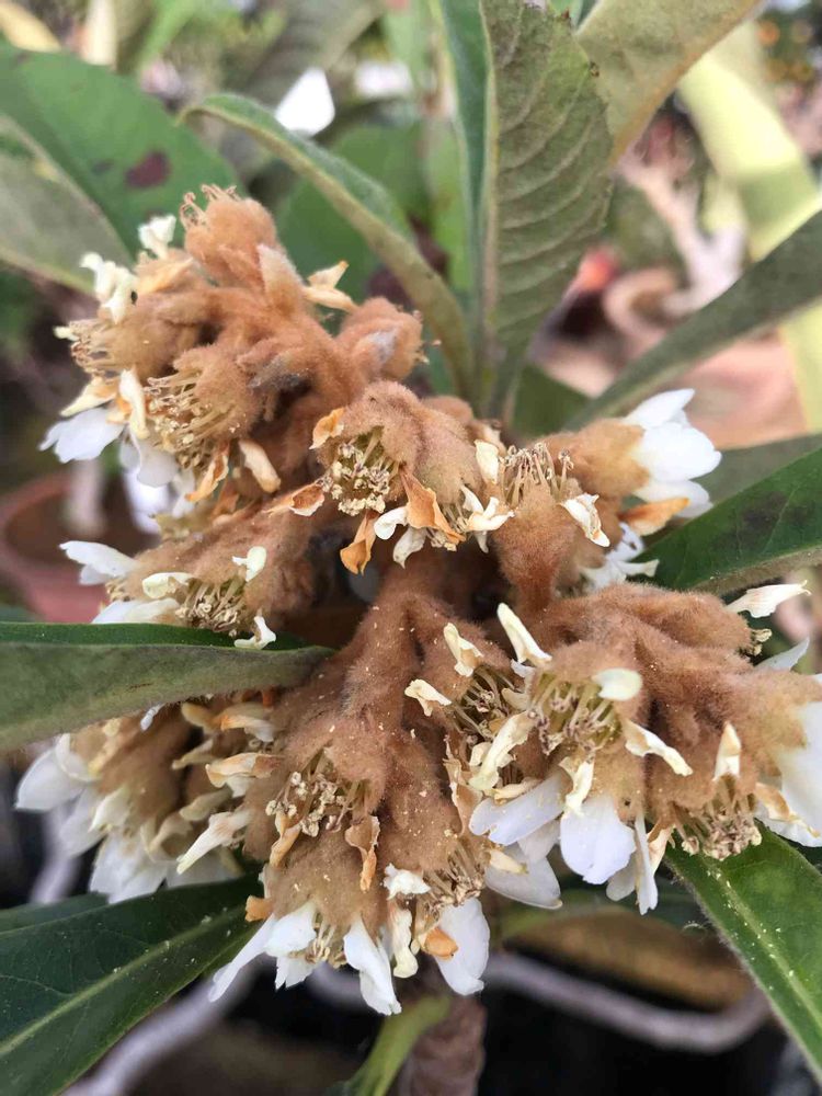ビワの木は、実家にあるけれど、花を見た事は無くて、初めて見ました。実がなるのは、6月〜7月頃ですね、なのに花は今咲くのですね!