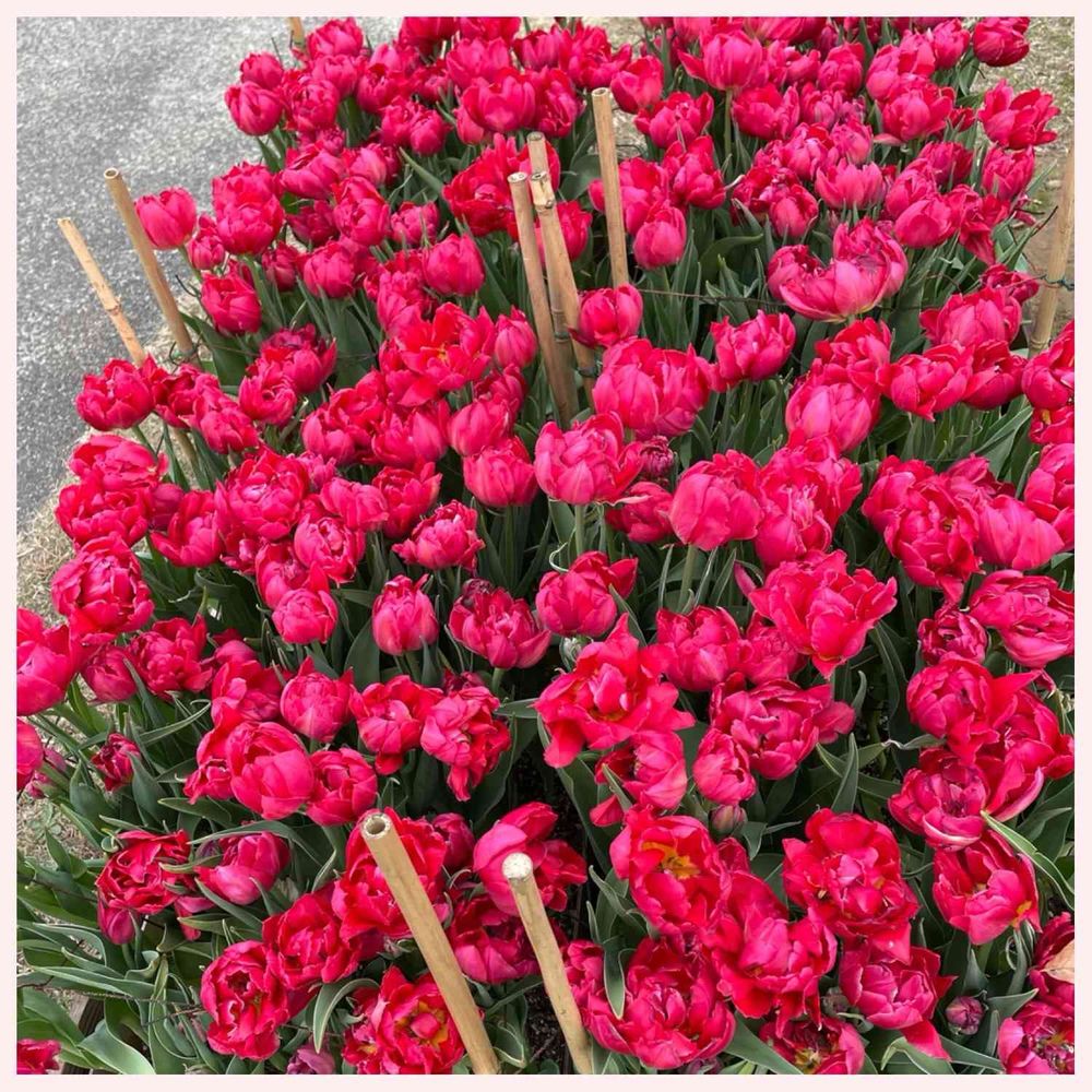 真っ赤な八重咲きの🌷が見事に満開でしたよ❤️どれもかわいい〜🌷❤️が一番元気もらえるカラーですね❣️