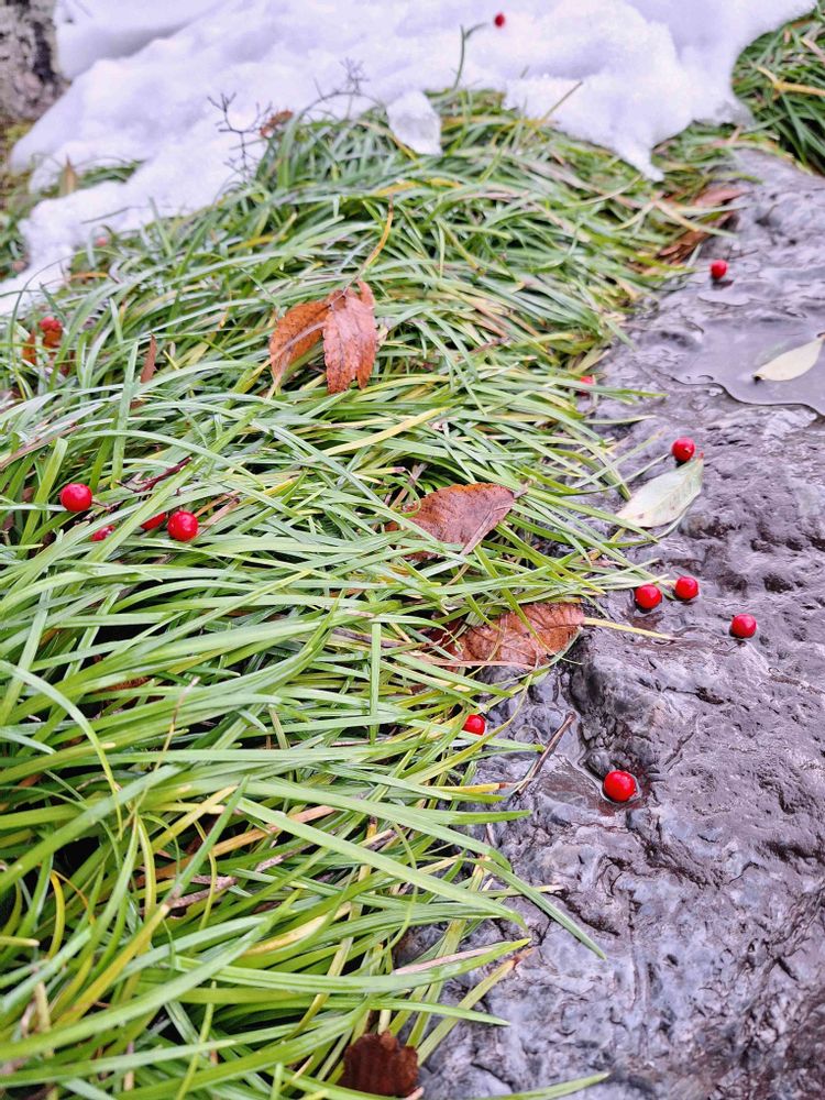 ②は南天の木の下に散らばった南天の実です😅