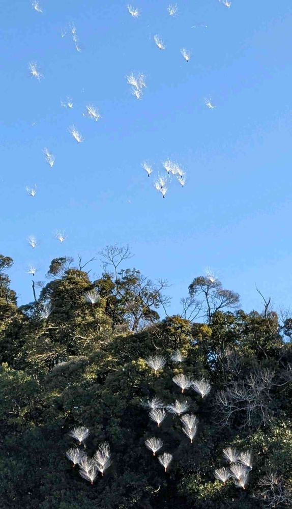 一度ひとつ持ち帰って裂開するの待ってたんです。でもそのタネが可哀想になり元あった所へ持っていったら、ふわりふわり〜やはりそうですよね〜