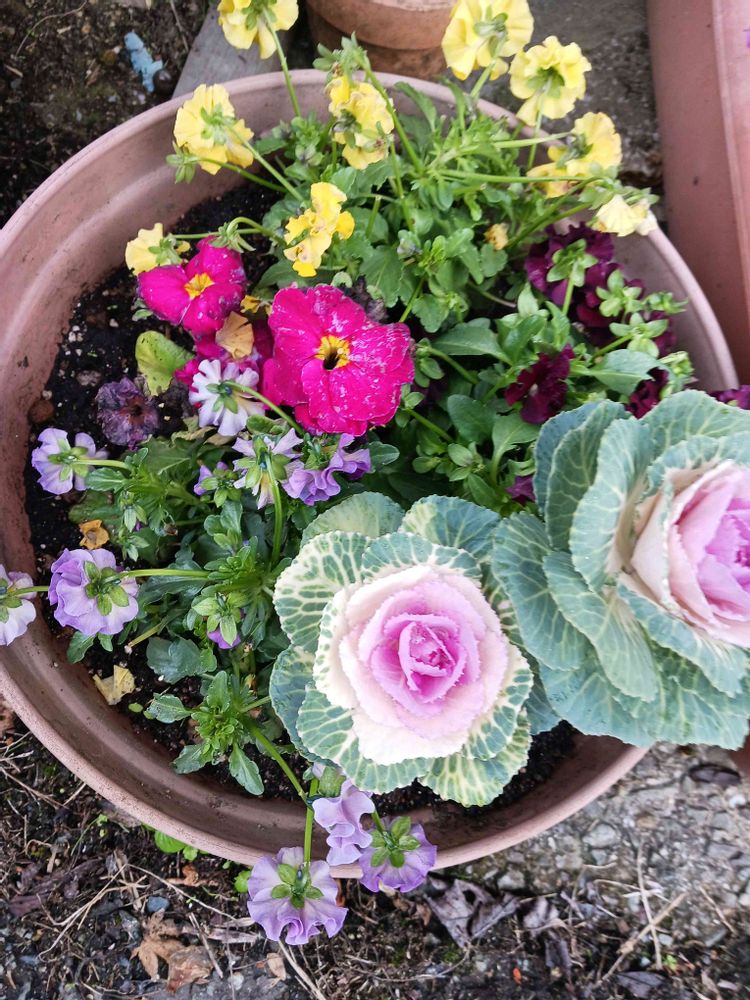 ビオラ葉牡丹の寄せ植え