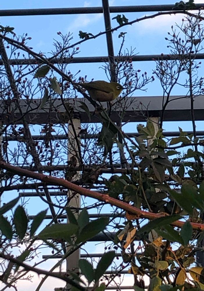 夕暮れ時、ピンク色に輝く「乙女サザンカ」と飛び立つ「メジロさん」をパチリ!📸🌸🌿🦜🌇😊😄✌️